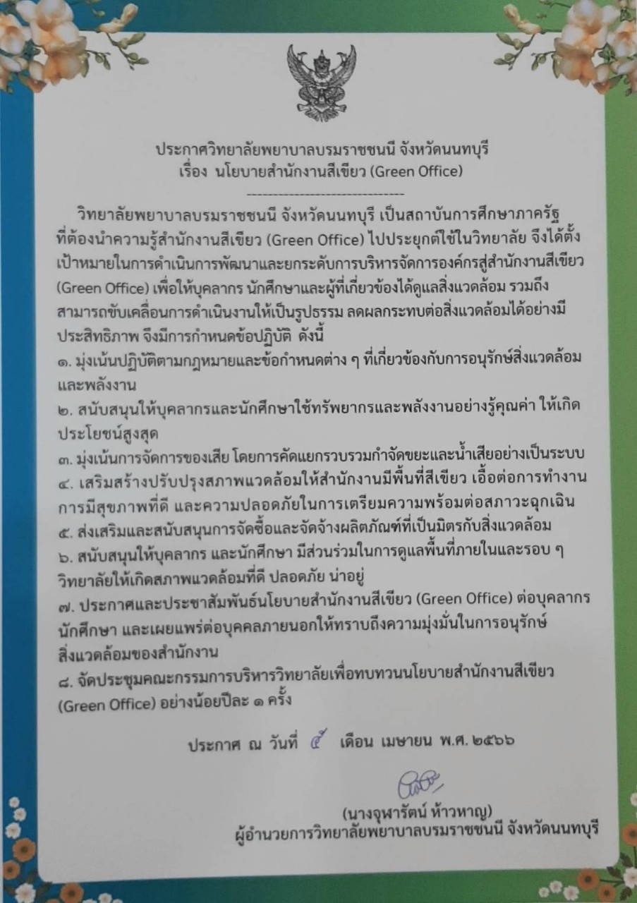 นโยบายสำนักงานสีเขียว ณ เมษายน 2566