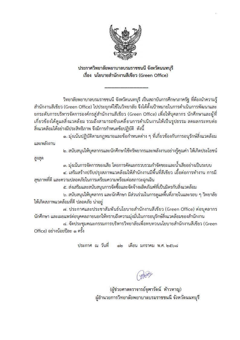 นโยบายสำหนักงานสีเขียว ณ มกราคม 2568